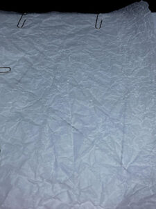 Připravte si kousek (velikostně větší o cca 3cm na každou stranu než je hlava draka) pečícího papíru. Zmačkejte ho, znovu narovnejte a potom přichyťte kancelářskými sponkami k vytištěné šabloně.