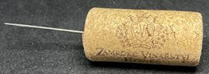 Nyní jehlou s ostrou špičkou připravte dětem na vyznačených místech dírky na vyšívání. Já používám malou vychytávku, velkou ostrou jehlu zaraženou do korkového špuntu. Tak se mi dírky dělají pohodlně a nebolí prsty od držení jehly.