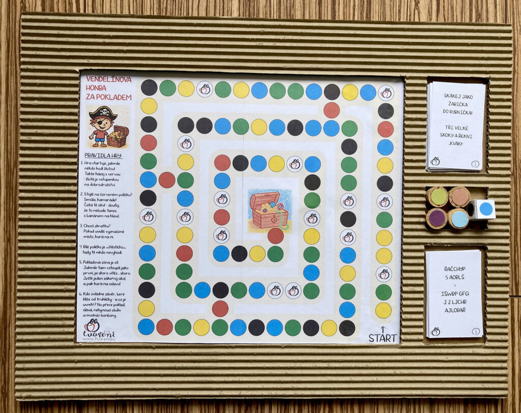 Tři hry na doma při špatném počasí. V první hře musí nejmenší děti podle barevných kartiček vytvořit na kartonovou destičku stejné barevné kombinace. Pro starší děti jsou připraveny tři číselné spojovačky. Pro všechny je potom desková hra Vendelínova honba za pokladem, kdy mladší děti plní jednodušší úkoly, starší děti složitější, zakódované úkoly.