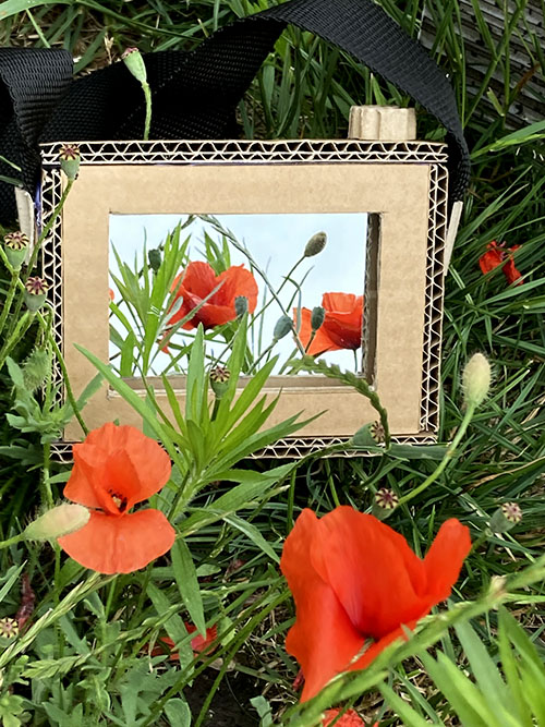 Čočky z průhledné fólie umožňují pozorování divoké přírody a záhadných tvorů – třeba motýla, který má zrovna tajnou poradu s levandulí.